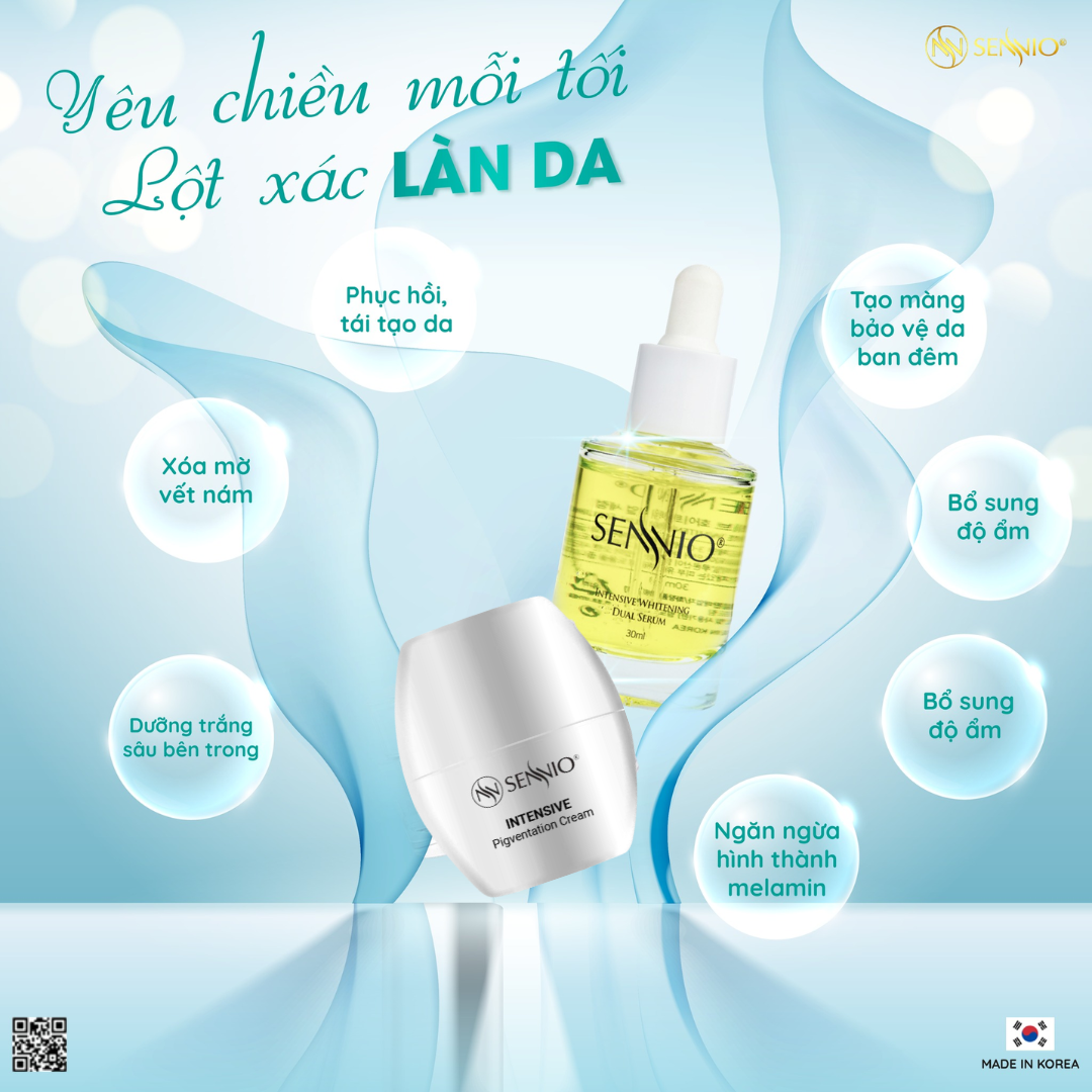 Bộ 02 SP dưỡng trắng da mờ nám, thâm sạm SENNIO gồm: