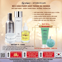 THÔNG TIN SẢN PHẨM BỘ 4 SẢN PHẨM DƯỠNG TRẮNG DA XÓA MỜ SẠM NÁM, THÂM MỤN SENNIO: