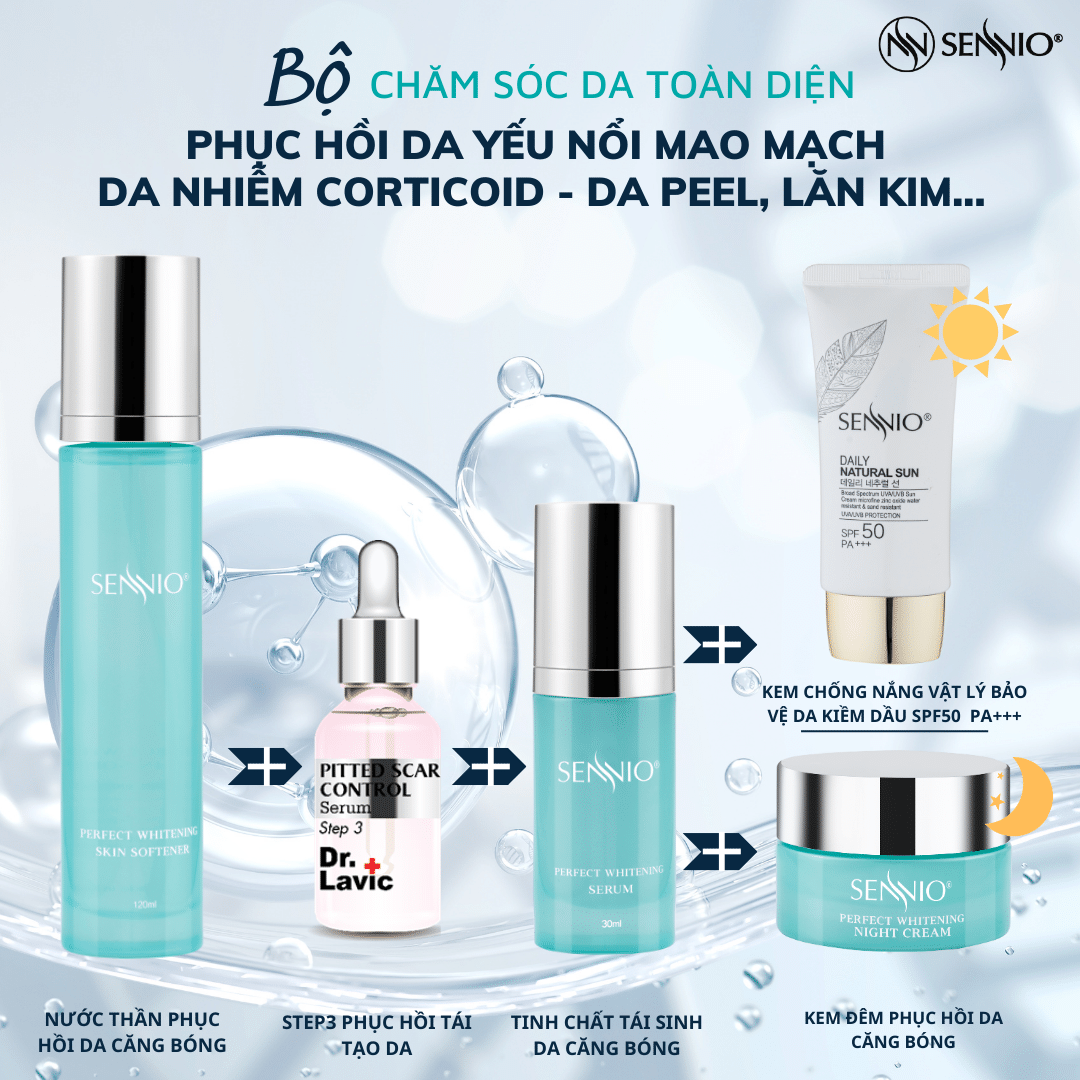 BỘ 5 SẢN PHẨM DƯỠNG DA TÁI SINH, PHỤC HỒI DA CĂNG BÓNG SENNIO GỒM: