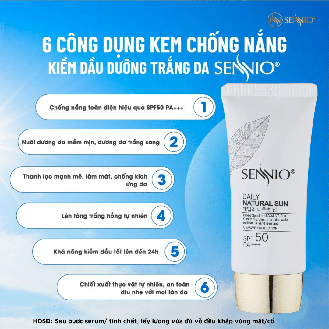 CÔNG DỤNG KEM CHỐNG NẮNG DƯỠNG DA KIỀM DẦU SENNIO: