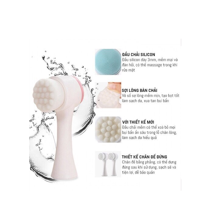 + Thiết kế cọ gồm 2 đầu là đầu tơ nhân tạo và đầu gai silicon 3D: Đầu tơ nhân tạo: 250000 sợi tơ nhân tạo loại bỏ bụi bẩn, bã nhờn, làm sạch sâu từng lỗ chân lông, ngăn ngừa da phát sinh mụn, hỗ trợ thu nhỏ lỗ chân lông. Đầu gai silicon 3D: giúp massage da, hỗ trợ lưu thông máu và giúp da được thư giãn, mang lại làn da khỏe mạnh hơn.