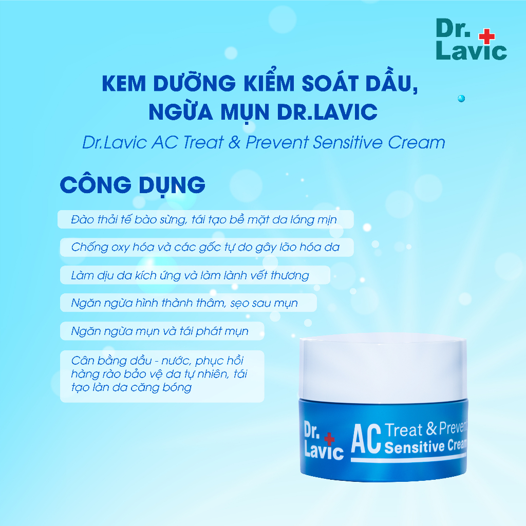 Kem dưỡng ẩm ngừa mụn Dr.Lavic AC Treat & Prevent Sensitive Cream kiềm dầu, chống tái phát mụn 20g DR959
