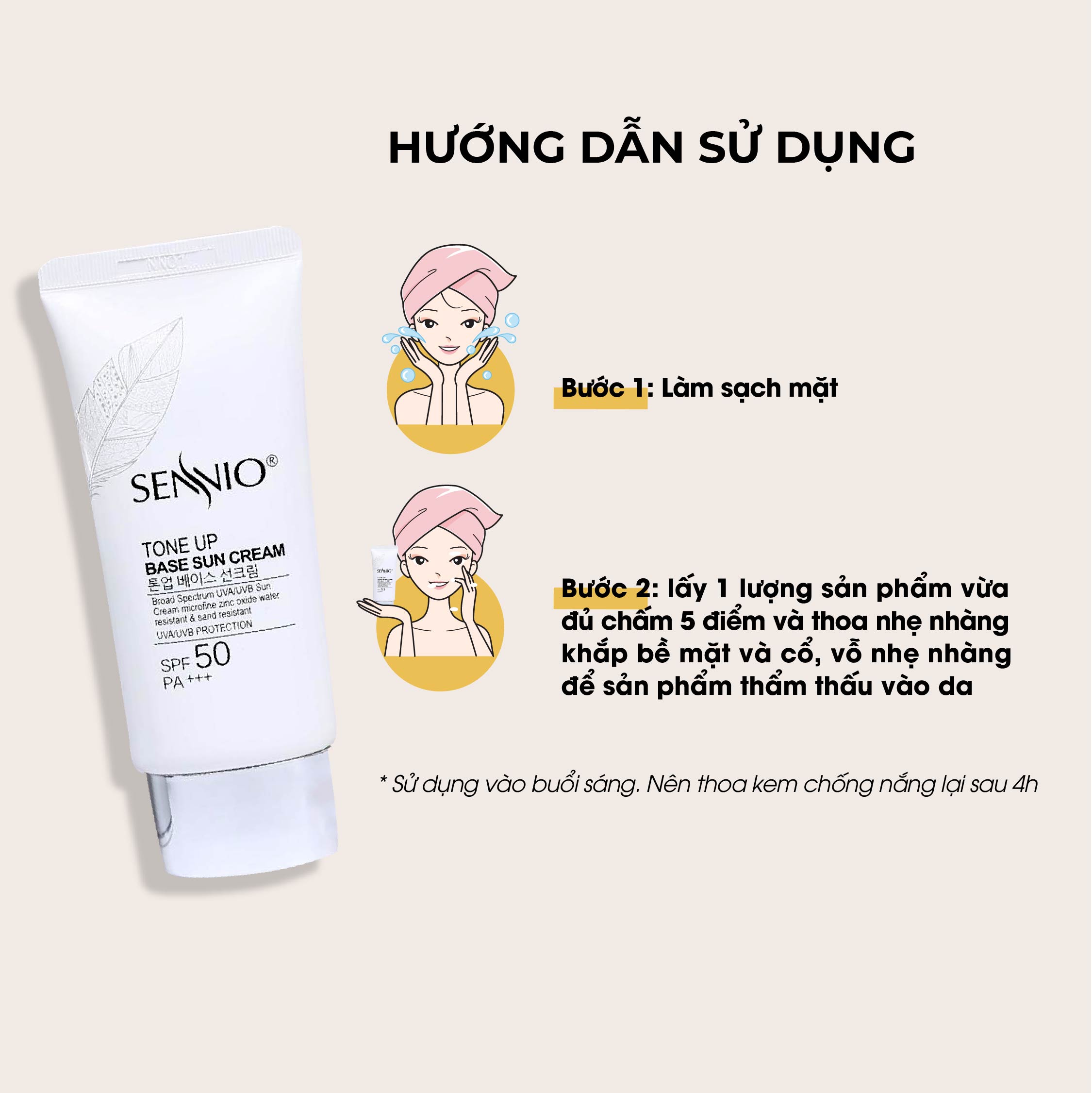 HƯỚNG DẪN SỬ DỤNG KEM CHỐNG NẮNG VẬT LÝ KIỀM DẦU 24H SPF50 PA+++ NÂNG TÔNG SENNIO CHUẨN CHUYÊN GIA: