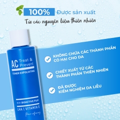 AC TREAT & PREVENT TONER EXFOLIATING: Cân bằng độ pH hoàn hảo cho da, kiểm soát dầu thừa, ngăn chặn sự hình thành và phát triển của mụn
