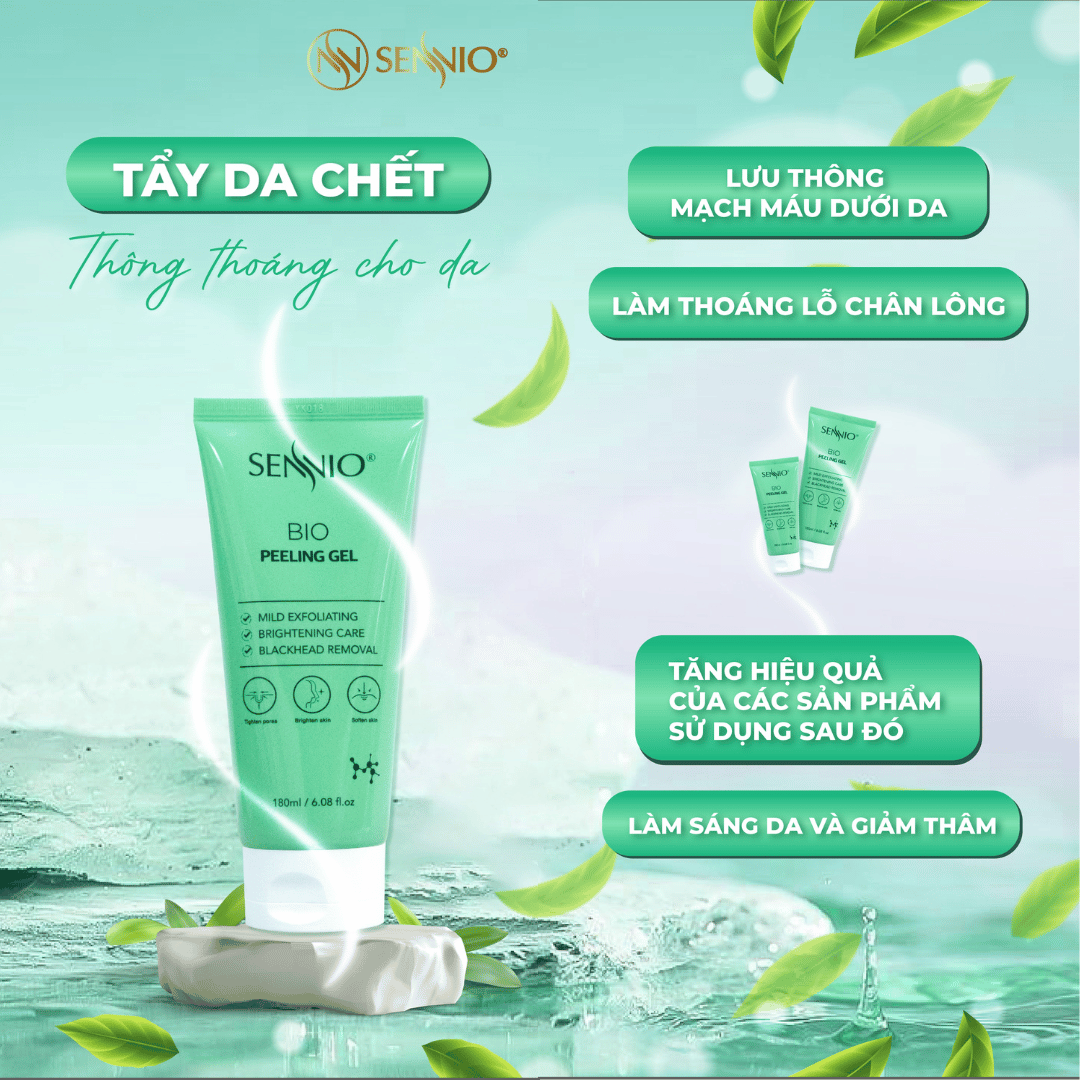 CÔNG DỤNG SẢN PHẨM TẨY TẾ BÀO CHẾT TĂNG SINH COLLAGEN GIÚP DA HẤP THU DƯỠNG CHẤT TỐI ĐA SENNIO :